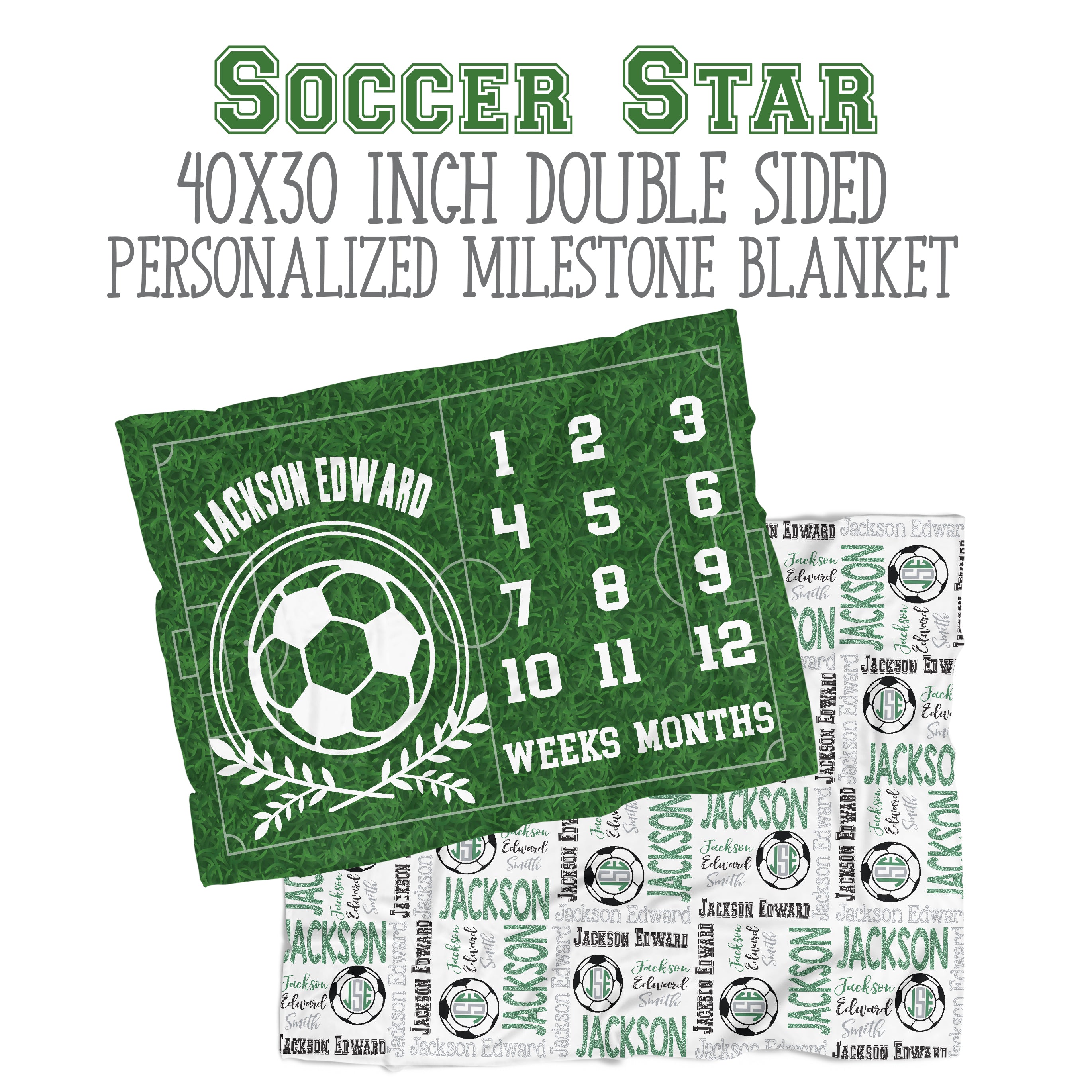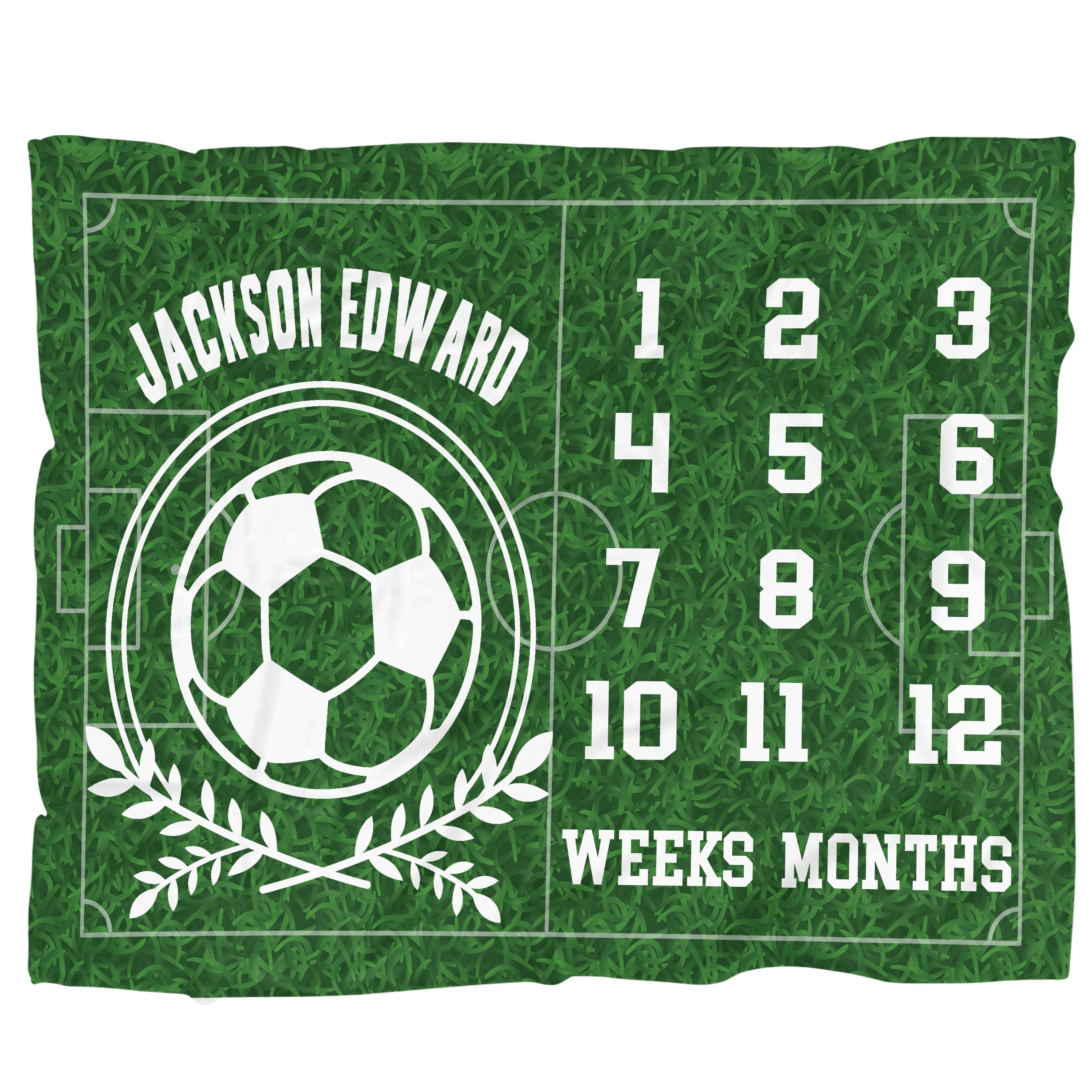 Whether you're a die-hard soccer fan or just love the sporty look, this soccer-themed minky blanket is a must-have for any parent looking to capture their baby's growth and development. Order yours today and score big with your baby's monthly milestones!