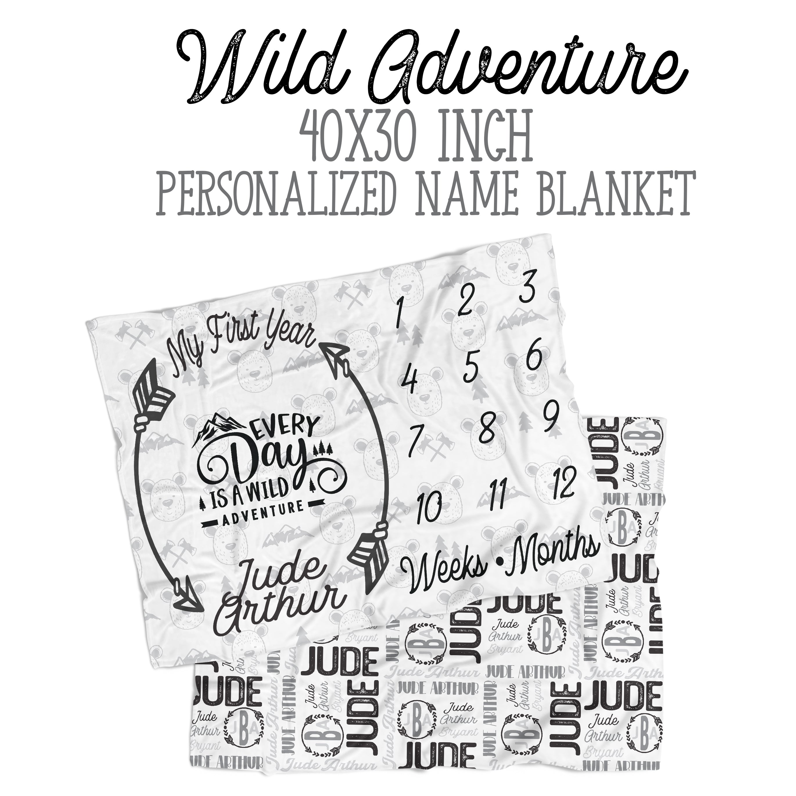 Introducing the Wilderness Wonders Baby Monthly Milestone Minky Blanket, the perfect way to capture your little one's growth and adventures! This cozy and soft blanket is made with premium quality minky fabric that is gentle on your baby's delicate skin, ensuring a comfortable and cozy experience.